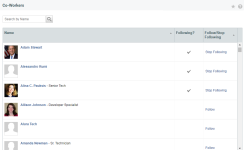 To learn more about, and connect with, your co-workers, navigate to Left Navigation Menu > Home > View > Co-Workers to open the Co-Workers page. It shows a list of all people in your company who are using Autotask, their job titles, phone numbers, maybe a photo, and their latest wall post.