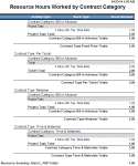 This report provides a summary of total hours worked by Resource, with further groupings by Contract Type, Contract Category, Activity Type, Work Type and Internal Time. |
