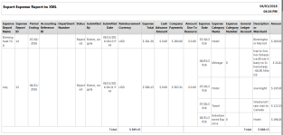 A list of submitted Expense Reports based on the selected criteria. The amount column in the report shows the total for the related Expense Report.