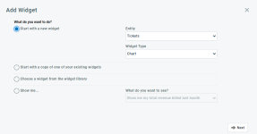 When you are adding a new widget, a wizard will guide you through several dialog pages that differ depending on your choices on the first page. The last page is always the Widget Settings page, which is identical to the one you will see when editing or copying an existing widget.