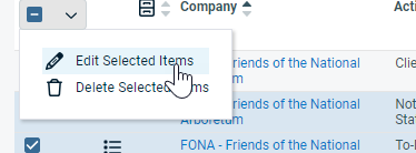 - On To-Do and Note tables with a context menu, select multiple to-dos or notes (by checking the boxes on the left), then click the drop-down icon in the selection column and select Edit Selected Items.