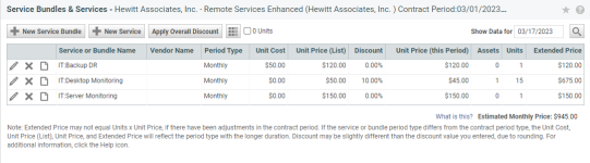 If the service bundle or service period type differs from the contract period type, the Unit Cost, Unit Price (List), and Extended Price will reflect the period type with the longer duration.