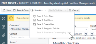 • You cannot create tickets for organizations with types of Dead or Cancelation.