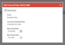 - Click on the date in the Actual column, or select Edit Actual Date from the context menu. The Edit SLA Actual Date/Time dialog window will open.