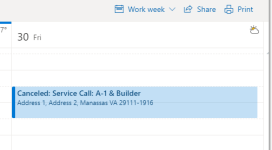 NOTE Canceled service calls are removed from LiveMobile and Outlook, but if you use an Exchange integration, the service call will remain on the schedule, but prefaced with "Canceled".