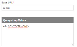 Click in the Querystring box where you want to insert the parameter. Select a field from the Parameters list and click the Insert button, or double-click the field, to add a parameter to the querystring. When the LiveLink is executed, the value from that field is passed to the external web site or application. LiveLink parameters are usually embedded in a querystring (see below). A parameter set is not required, but without one, no data is passed to the external web site or application.Base URL Enter the URL for the application or web site the LiveLink will open. To find the Base URL, open the web site or web application and navigate to the page to which you want to link.