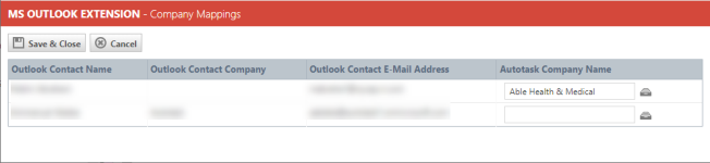 • When you install the Autotask MS Outlook plug-in, contact integration is initially disabled. For information on how to enable contact integration, refer to Contacts tab.