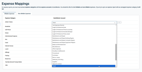 In the QuickBooks Account column, click on the corresponding line item of the Expense Category you wish to map.