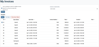 The My Invoices page is dedicated to manually searching for one or multiple invoices for the purpose of syncing or re-syncing, if necessary.