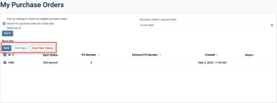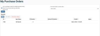 The My Purchase Orders page is dedicated to manually searching for one or multiple purchase orders for the purpose of syncing or re-syncing, if necessary.
