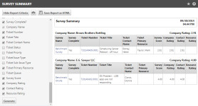 Description | A report in .csv format that shows the responses to each survey question, and the ticket number the survey is linked to. |