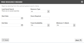 The Find Resource wizard helps you to identify resources that have a specific skill set, or resources with a skills profile similar to another resource.