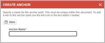Anchors will not be visible once the article or document is saved. When you click the link, the anchor point is moved to the top of the content window.