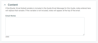 TIP  You can override the content of this field when you publish a quote. The Publish page also contains an Email Notes field. Content you enter in that field will override the content specified here for the published quote only. Refer to Publishing a quote.