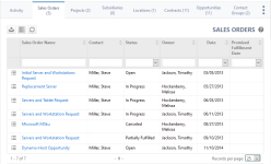 The Sales Orders tab appears on the accessory tabs of the Organization page. On this tab, you can view and manage existing sales orders for the organization. To open the page, use the path(s) in the Security and navigation section above.