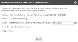 For your Managed Services customers, you are monitoring and supporting specific devices (assets, configuration items). Each device is covered under a contract. The customer pays you for the maintenance service the item is tied to.