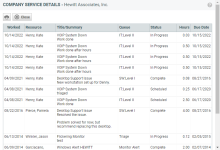 The Organization Service Details displays the last ten time entries—against any ticket—for this customer. This puts the current ticket in context and lets you evaluate the urgency with which it should be addressed:
