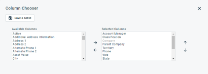 - Double-click a column name or select one or multiple columns and click the left or right arrow to move columns to the other panel.