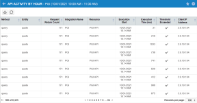 The interactive API Activity by Hour report provides visibility into the usage statistics of your integrations. This information helps you create a complete picture of your API activity, including which of your applications are approaching or exceeding call thresholds, so that you can manage them effectively. For more information about API activity thresholds, refer to our REST and SOAP articles in the Autotask Developer Help.